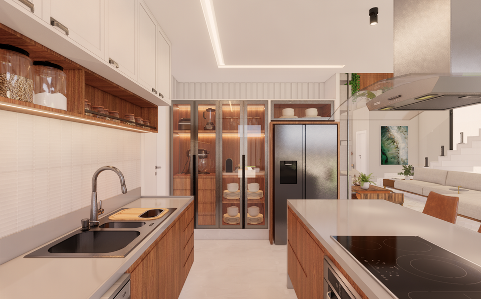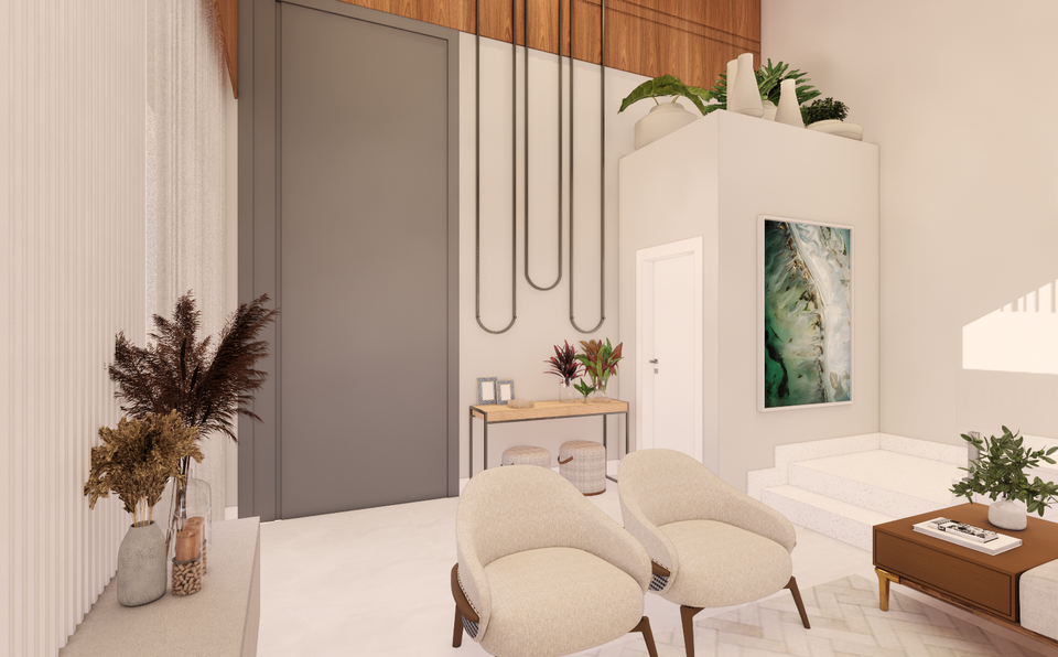 Projeto completo de arquitetura e interiores para uma residencia familiar de 240m2 onde a integração foi a palavra de ordem do projeto. No térreo todos os ambientes sociais se conectam dando um ar de amplitude e sofisticação com elementos elegantes e imponentes. Madeira, cinza e vidro foram os materiais eleitos para a construção que também foi executado por nosso time Studio C2.